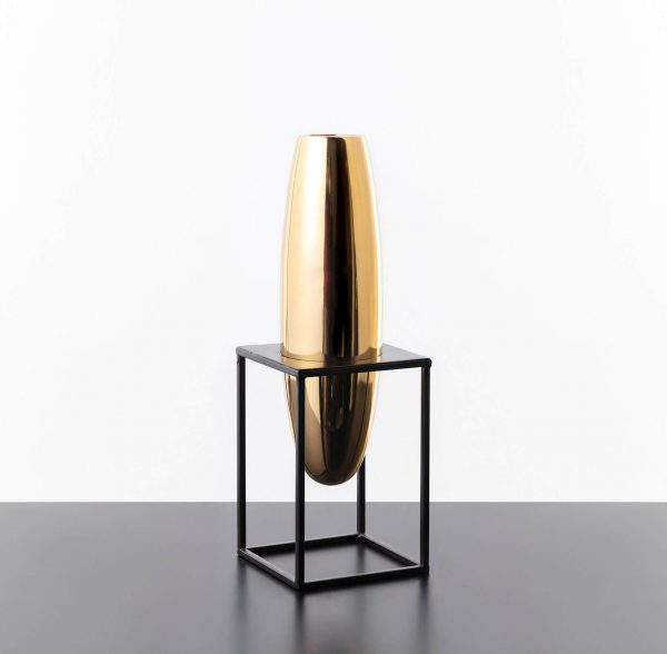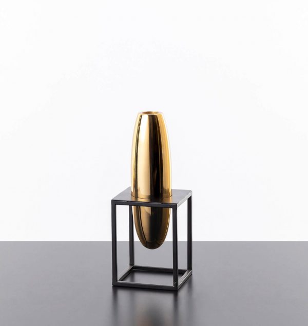 SİYAH STANDLI ALTIN ELİPS VAZO